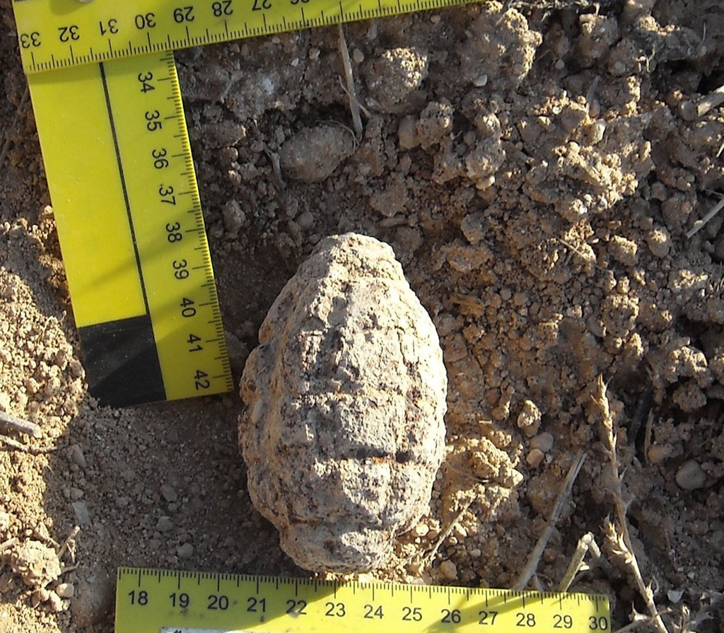 La Guardia Civil ha desactivado una granada de mano, de las denominadas “piña”, de la pasada guerra civil española y en avanzado estado de deterioro, que fue localizada por el propietario de una finca agrícola del término municipal de Tinajeros (Albacete).