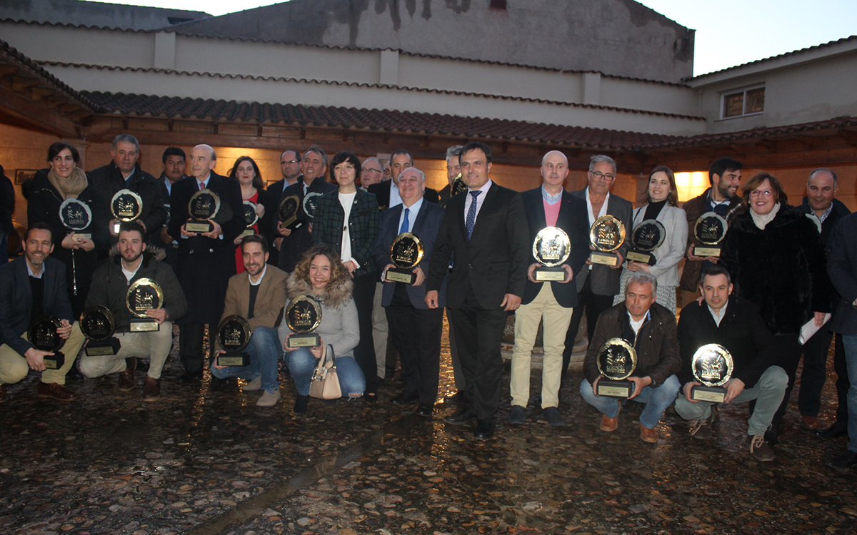 Antes de la entrega de los galardones, Gregorio Martín-Zarco y Fernando Villena, ex presidente y ex vicepresidente, respectivamente, recibieron la insignia de oro y brillante del Consejo Regulador por su trabajo al frente de la Denominación de Origen La Mancha.