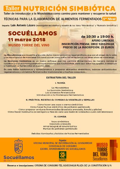 El Museo Torre del Vino, va a acoger el próximo domingo, 11 de marzo, un Taller de Nutrición Simbiótica, una jornada de introducción a la elaboración de alimentos fermentados que va a estar impartida por Luis Antonio Lázaro, investigador microbiótico y coautor de los libros ‘Microbiótica’ y ‘Nutrición Simbiótica’.