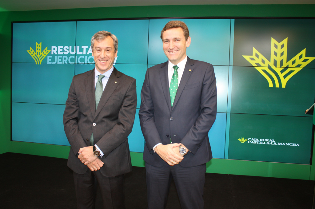 El presidente de Caja Rural Castilla-La Mancha, Javier López Martín, y el director general, Víctor Manuel Martín López, han desgranado los apartados más relevantes de la actividad económica de la Entidad durante su comparecencia, resaltando que la Caja ha crecido en todos los epígrafes y en todos los márgenes (intereses, comisiones, bruto, neto), lo que confirma la solidez, seguridad y eficiencia de la Caja y de su modelo de negocio.