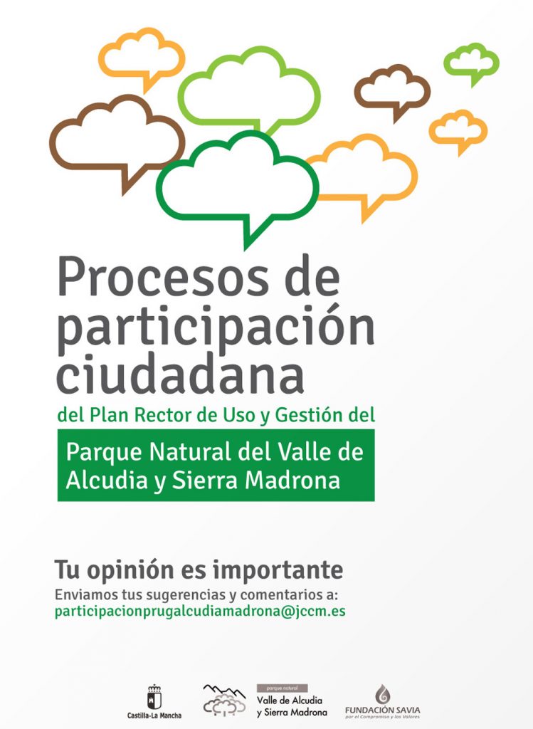 El Consejo Rector del Parque Natural Valle de Alcudia y Sierra Madrona (ubicado al sur de la provincia de Ciudad Real) y la Fundación Savia han informado que ya está abierto el proceso de participación pública en el proceso de aprobación del Plan Rector de Uso y Gestión del Parque Natural del Valle de Alcudia y Sierra Madrona.