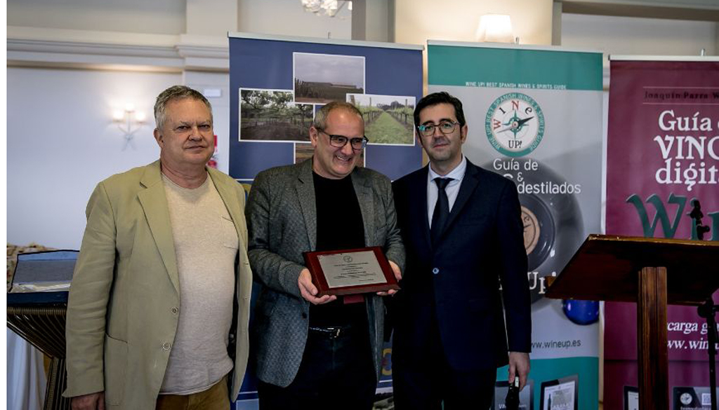 El momento cumbre de la gala, celebrada en Tomelloso (Ciudad Real), fue precisamente la entrega de la placa conmemorativa a Pedro Ballesteros , que en palabras de Joaquín Parra, director de la guía Wine Up!, se entrega en reconocimiento a su trayectoria profesional, «por ser uno de los mejores embajadores del vino Español fuera de nuestras fronteras y en general por su aportación al sector del vino y su cultura».