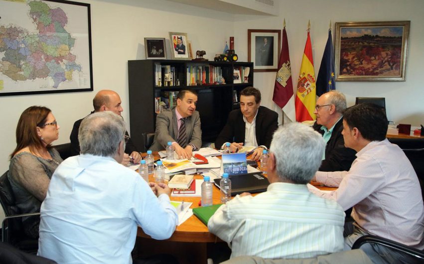 Martínez Arroyo ha mantenido un encuentro con los secretarios generales de ASAJA, UPA y COAG en Castilla-La Mancha, José María Fresneda, Julián Morcillo y Ángel Estanislao, además del director de Cooperativas Agro-alimentarias en la región, José Luis Rojas, en el que han estado presentes también los directores generales de Política Forestal y Espacios Naturales, Agricultura y Ganadería y Desarrollo Rural, Rafael Cubero, Cruz Ponce y José Manuel Martín, respectivamente.