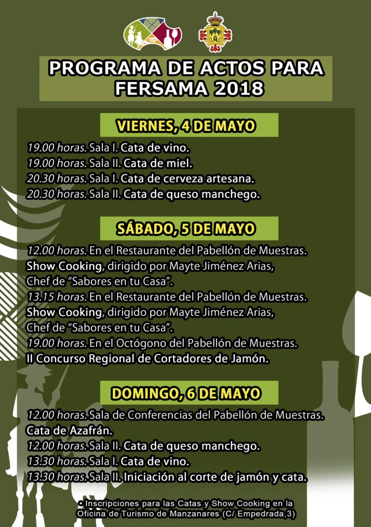 El sábado por la mañana habrá dos sesiones de show cooking, demostración de cocina, que serán dirigidas por la chef de ‘Sabores en tu Casa’, Mayte Jiménez. Las inscripciones para participar en estas actividades se realizan en la Oficina de Turismo de Manzanares.