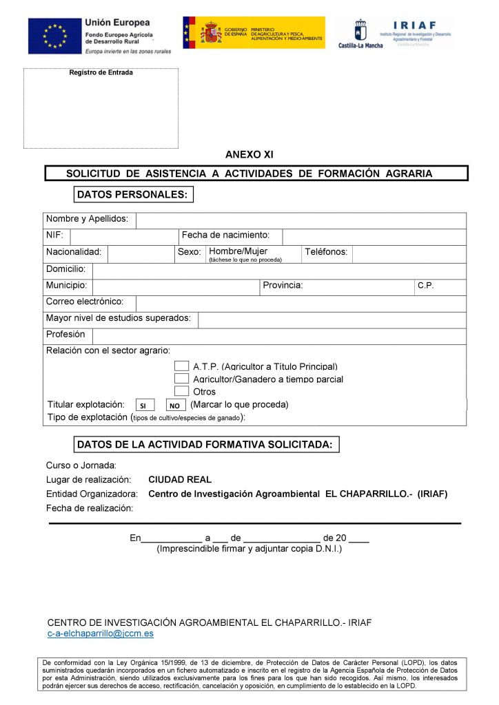 Los interesados en asistir deben mandar la solicitud rellena antes del día 27 de mayo a: