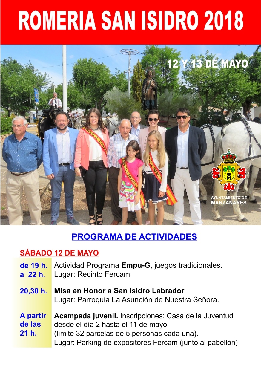 Manzanares (Ciudad Real) celebra el próximo fin de semana la romería de San Isidro 2018. La principal novedad del programa de actos presentado por la concejala de Festejos, Esther Nieto-Márquez, es una paella popular gratuita el domingo para 1.200 personas. También habrá más protagonismo para grupos manzanareños. La Agrupación ‘Manuel de Falla’ dará el toque manchego a la celebración que se desarrollará en el recinto de la Feria del Campo.