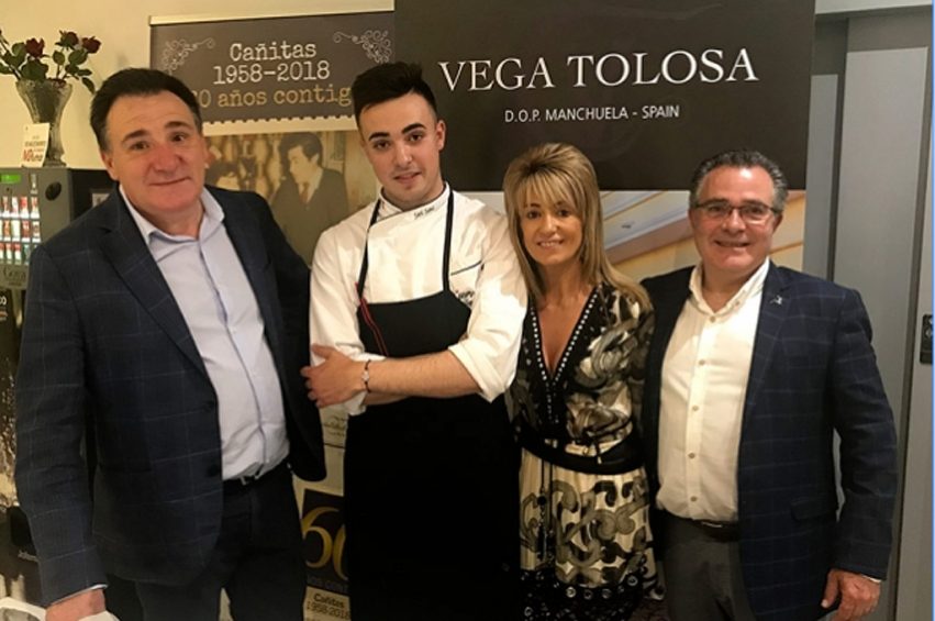 Al frente de una elaborada cena los hijos de Joaquín Sanz, la nueva generación del Hotel Cañitas: Joaquín y Javier Sanz Luján, y a la par su otro joven chef, Juan Enrique Sahuquillo Jiménez fueron explicando junto con Juan Miguel Tolosa, por parte de la bodega, cada uno de los platos y de los seis vinos (ecológicos de la D.O Manchuela), respectivamente, con los que deleitaron a los participantes.