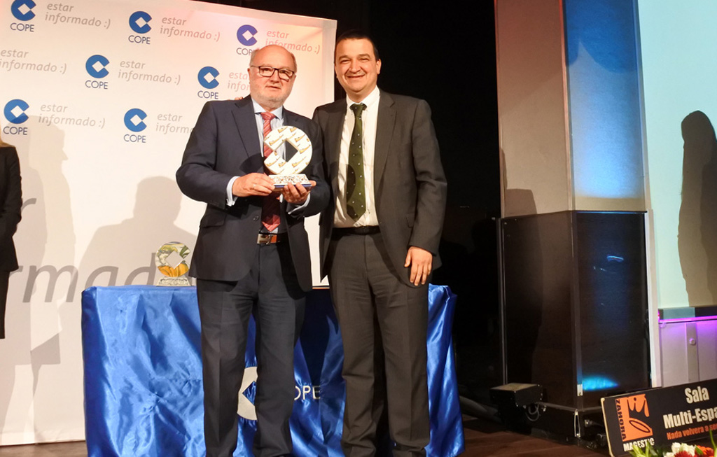 COPE Ciudad Real ha premiado al periodista agrario César Lumbreras, por su trabajo como director y presentador del programa radiofónico ‘Agropopular’. Un premio que el conocido periodista recibió de manos del consejero de Agricultura, Medio Ambiente y Desarrollo Rural, Francisco Martínez Arroyeo en la XV Gala de los Premios COPE Ciudad Real, celebrada el miércoles 23 de mayo en la capital ciudadrealeña.