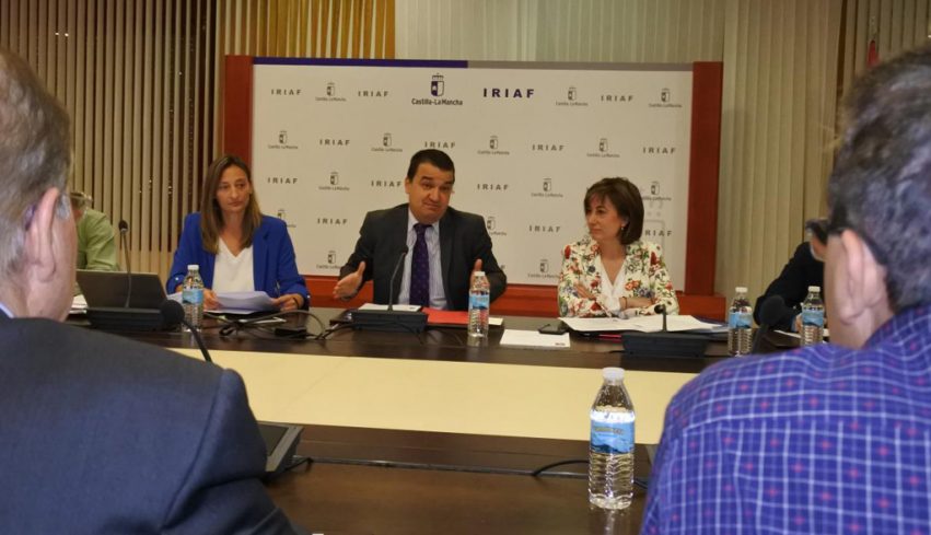 El consejero de Agricultura, Medio Ambiente y Desarrollo Rural, Francisco Martínez Arroyo, ha analizado esta mañana con el sector vitivinícola regional, en una reunión del patronato de la Fundación Tierra de Viñedos, celebrada en Tomelloso, en las instalaciones del Instituto Regional de Investigación y Desarrollo Agroalimentario y Forestal, (IRIAF), la fórmula para dar viabilidad a la Fundación, en la que está representado todo el sector vitivinícola regional: los productores, a través de las organizaciones agrarias; las bodegas y cooperativas y las industrias del mosto y el alcohol.