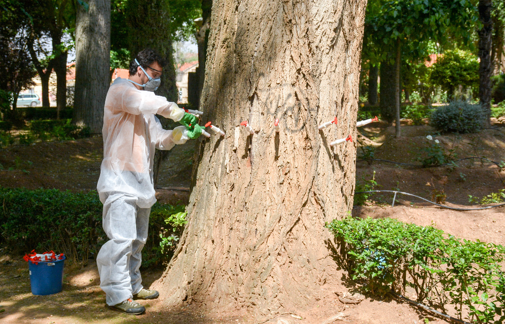 Con el fin de intentar evitar productos químicos, reducirlos o dejarlos como último recurso, la concejalía de Medio Ambiente del Ayuntamiento de Tomelloso (Ciudad Real), va a poner en práctica un año más la técnica de la endoterapia para combatir plagas en las zonas verdes de la ciudad. Se trata de aplicar inyecciones con productos fitosanitarios, directamente en los troncos de los árboles, para atajar o prevenir enfermedades, con el objetivo de reducir las plagas molestas para las zonas verdes y los vecinos.