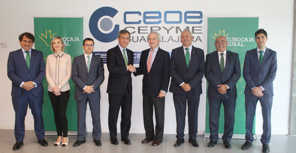 El convenio fue rubricado por el presidente de Eurocaja Rural, Javier López, y el presidente de CEOE CEPYME Guadalajara, Agustín de Grandes, en la sede de la Confederación Empresarial guadalajareña.