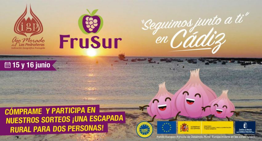 La Indicación Geográfica Protegida (IGP) Ajo Morado de Las Pedroñeras repite mañana 15 de junio y sábado 16 acción promocional en Cádiz, en otras 12 fruterías del Grupo Frusur. En total el Ajo Morado de Las Pedroñeras habrá estado presente durante este mes de junio en 26 tiendas de la cadena gaditana, situadas en Cádiz capital, Jerez de la Frontera, San Fernando, El Puerto de Santa María y Puerto Real.