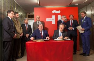 En paralelo al acto de aniversario, el presidente de la FEV, Miguel A. Torres, y el director del Instituto Cervantes, Juan Manuel Bonet, firmaron un convenio de colaboración entre ambas organizaciones con el objeto de difundir la cultura del vino en el exterior El protocolo de actuación contemplará la realización de actos en las sedes del Instituto Cervantes por elmundo que contribuyan a difundir la cultura del vino y a potenciar sus vínculos con la lengua y la literatura en español .