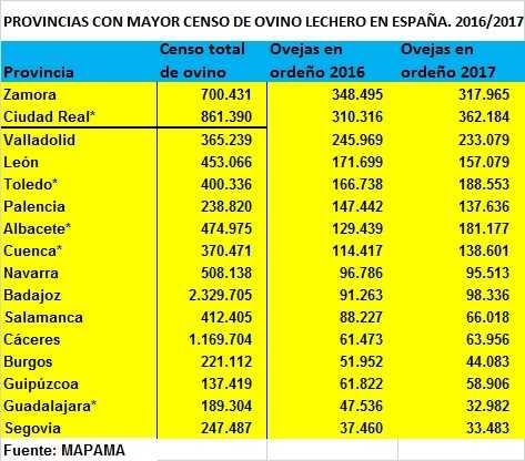 Como consecuencia de esas tendencias, Zamora ha perdido el liderazgo en el censo de ovino lechero que venía ostentando desde hace más de dos décadas a favor de Ciudad Real, que es la provincia en la que más ha crecido la cabaña de ovejas en ordeño. En el caso de Zamora, la cabaña de ovejas en ordeño ha bajado de 348.495 a 317.965, mientras que en el caso de Ciudad Real ha subido desde 310.316 hasta de 362.184.