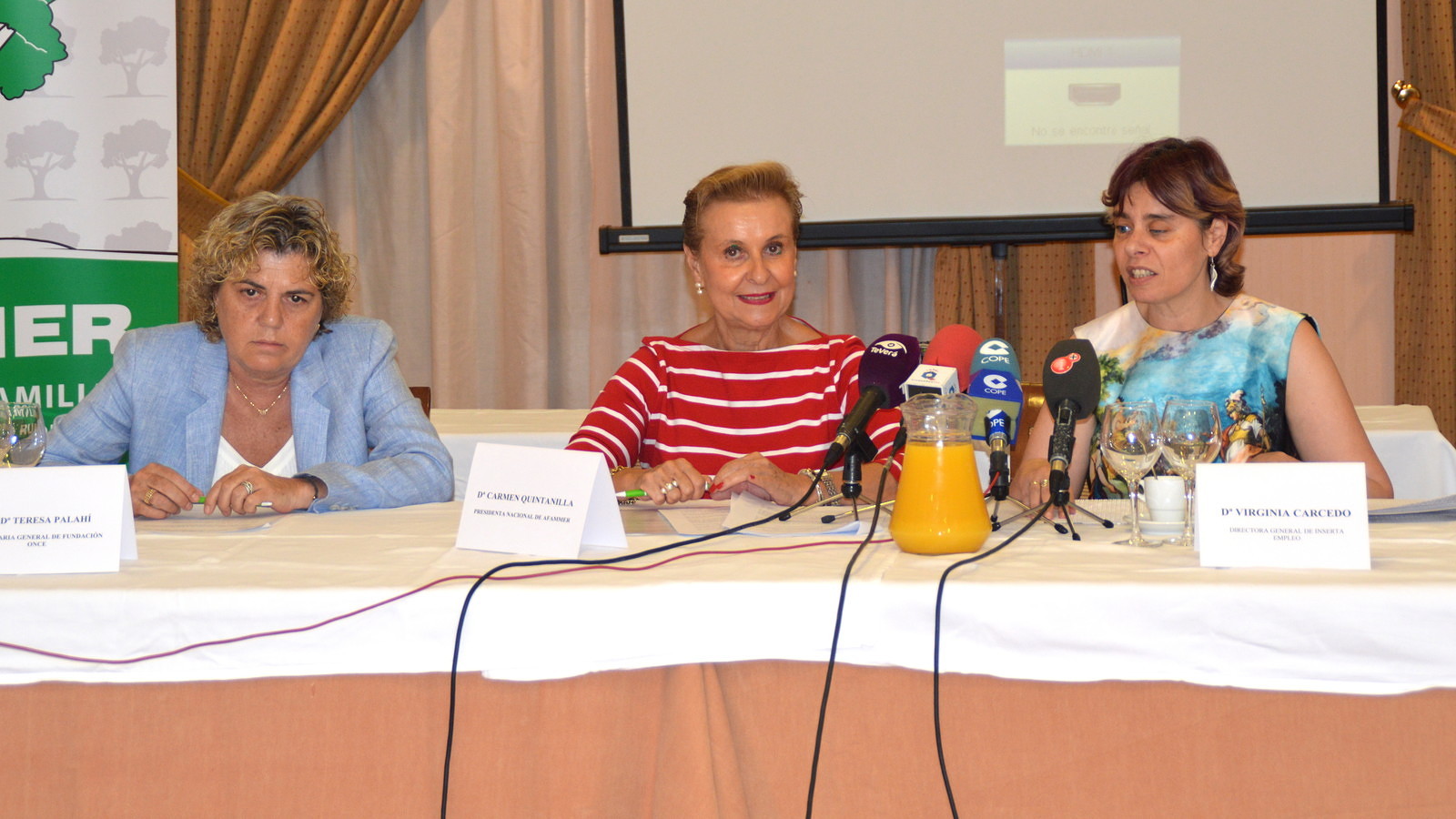 La presidenta nacional de la Asociación de Familias y Mujeres del Medio Rural (AFAMMER), Carmen Quintanilla; la secretaria general de Fundación ONCE, Teresa Palahí; y la directora general de Inserta Empleo, Virginia Carcedo, han presentado en Ciudad Real un avance de los resultados registrados por la Comisión de Seguimiento del convenio suscrito por estas entidades.