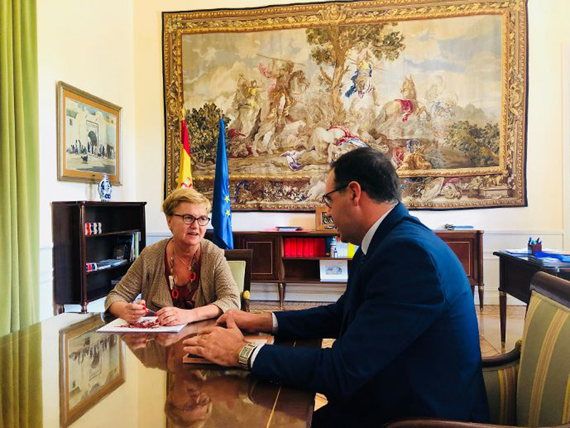 La comisionada se ha mostrado muy interesada por el funcionamiento de la Diputación y en la actividad que desarrolla en una provincia como Cuenca. Así, el presidente provincial le ha explicado la labor de la institución en el mantenimiento de carreteras o el arreglo de caminos, el reparto de agua a los municipios que lo requieren con los camiones cisterna o la más reciente presentación de 17 proyectos a las convocatorias ITI de la Junta.