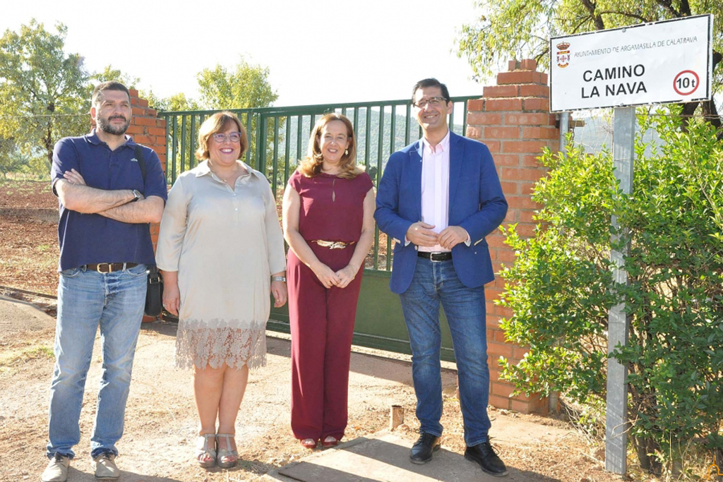 Caballero, Olmedo y Monroy han visitado el inicio de este plan sobre el Camino de La Nava en Argamasilla de Calatrava, acompañados también del vicepresidente de Obras de la Diputación Provincial, Manuel Martínez López-Alcorocho, y el responsable de Tragsa en la provincia, Santiago Jiménez.