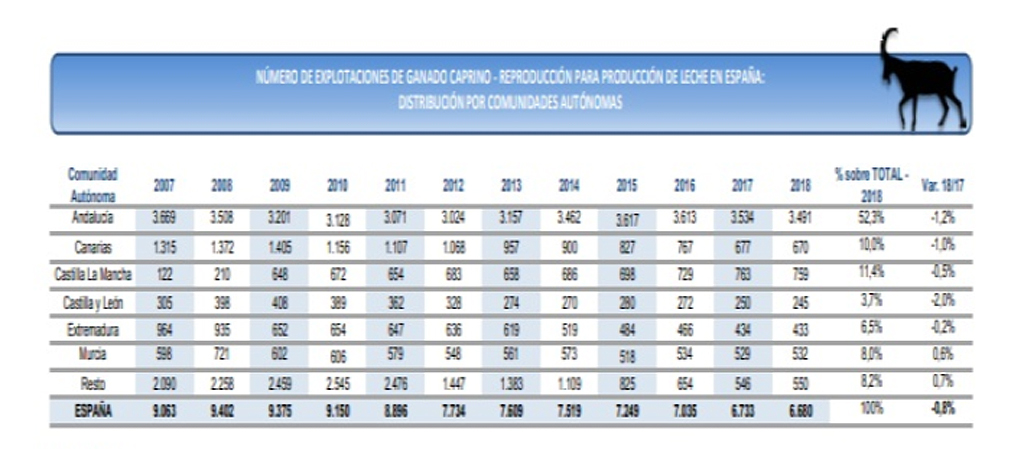 La crisis de precios de los últimos tres años ha provocado el cierre de 840 explotaciones de caprino de leche, al pasar de 7.519 en 2014 a 6.680 en la presente campaña, según datos del Ministerio de Agricultura. Este hecho, ha tenido como consecuencia que España pierda su posición de liderazgo productivo en el mercado comunitario.