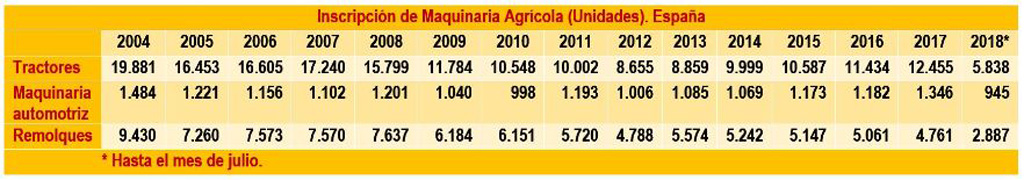 Medidas extraordinarias como los Planes RENOVE convocados en 2014 y 2017, supusieron un cierto estímulo, que no se ha producido en la convocatoria de 2018, dado que se ha reservado únicamente para la adaptación de los equipos de aplicación de purines. La organización señala que esta puede ser la razón de que nuevamente este año, a fecha julio, se haya producido una caída del 7 % respecto a las inscripciones que se habían hecho entre enero y julio de 2017.