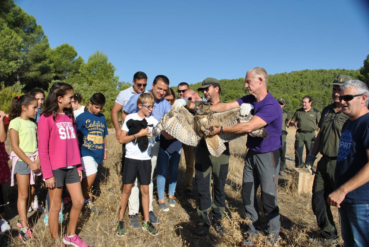 En el acto, que ha tenido lugar en el paraje boscoso ‘Pozo La Olivilla’ entre los términos municipales de Tébar y Sisante, han estado presentes el alcalde de la localidad, Modesto Herráiz; la alcaldesa de Tébar, Marisa Gabaldón, representantes del Cuerpo de Agentes Medioambientales de la comarca; personal técnico del Centro de Recuperación de Fauna de Albaladejito; medio centenar de alumnos de Primaria y maestros del CEIP ‘Fernández Turégano’ de la localidad, así como el director provincial de Agricultura, Medio Ambiente y Desarrollo Rural de Cuenca, Joaquín Cuadrado.