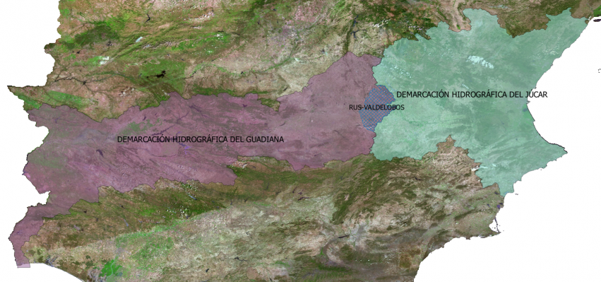 Ruperto Mesas explica que Rus-Valdelobos pertenece al Guadiana, aunque está reconocida en el Plan Hidrológico de esta cuenca como masa compartida con la de Mancha Oriental (demarcación del Júcar) ya que su descarga natural de agua es en su totalidad hacia Mancha Oriental.