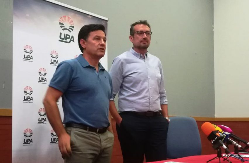 El secretario general de UPA Castilla-La Mancha, Julián Morcillo, y el responsable de Vino de la Unión de Pequeños Agricultores y Ganaderos, Alejandro García-Gasco, han ofrecido una rueda de prensa este martes en Valdepeñas para explicar “el grave momento” que atraviesa el sector vitivinícola en un inicio de campaña marcada por la falta de precios, sin tablillas en muchos casos hasta la fecha de convocatoria.