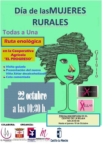 Los actos comienzan el 22 de octubre a las 10.30 horas con la Ruta Enológica “Todas a Una” en la Cooperativa El Progreso de Villarrubia de los Ojos, donde se hará una visita guiada, seguida de una cata comentada del nuevo producto de la misma, un mosto parcialmente fermentado y desalcoholizado, “Viña Xétar por Ellas”, cuyos beneficios irán destinados a la lucha contra el cáncer.