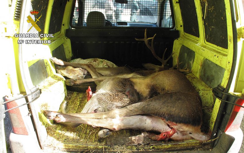 Los hechos ocurrieron hace aproximadamente un mes cuando una patrulla de la Guardia Civil se encontraba realizando un control de identificación de personas y vehículos en horario nocturno; en ese momento dos ocupantes de un turismo se dieron a la fuga, dejando abandonado el vehículo, que transportaba un machete de caza con restos de sangre, dos ciervos, una linterna y un rifle.