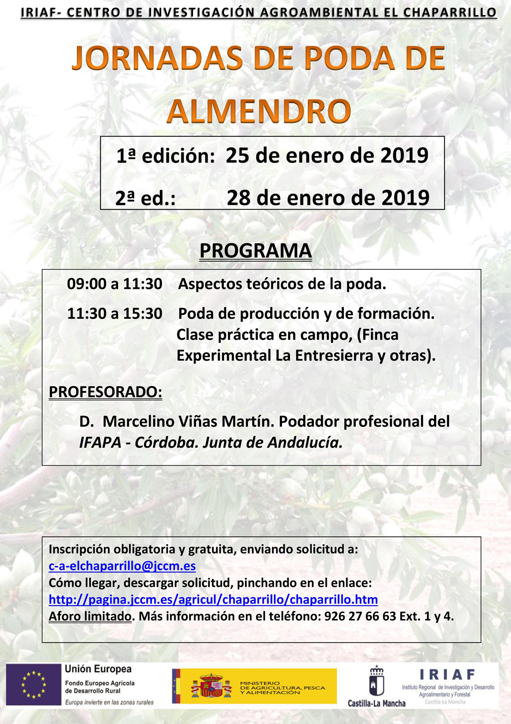 El Centro de Investigación Agroambiental ‘El Chaparrillo’, de Ciudad Real, va a desarrollar en las próximas semanas dos jornadas sobre poda de almendro. En concreto, tendrán lugar los días 25 y 28 de enero, en horario de mañana.