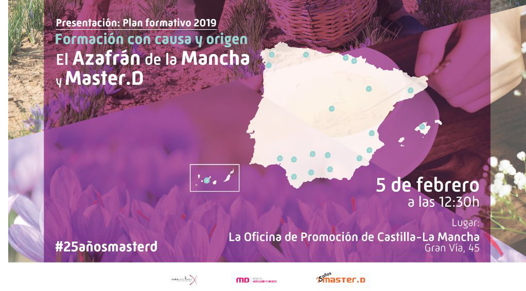 La Escuela de Hostelería y Turismo MasterD y la Fundación Consejo Regulador de la Denominación de Origen Protegida (DOP) Azafrán de La Mancha presentarán, el próximo día 5 de febrero a las 12:30 el plan formativo para 2019, en la Oficina de Promoción de Castilla- La Mancha de Madrid (Gran Vía, 45).