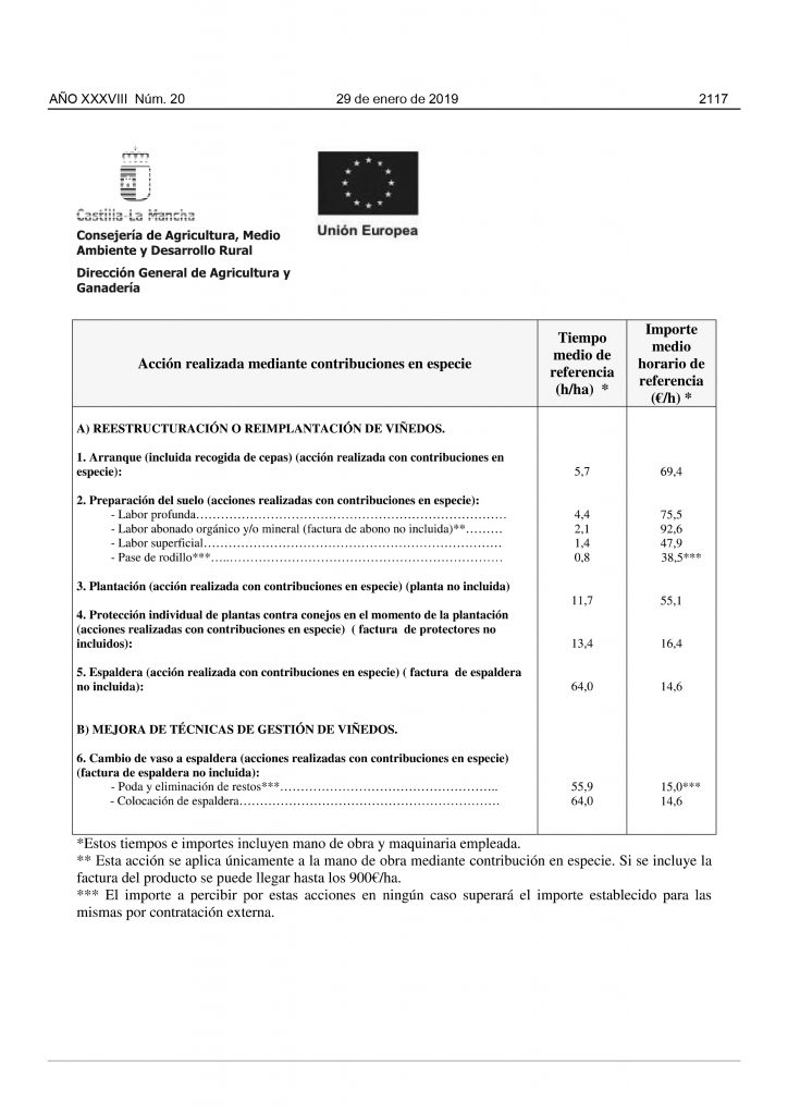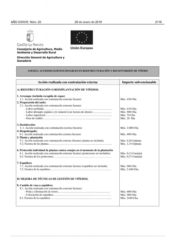 El Diario Oficial de Castilla-La Mancha publica este martes la Orden de la Consejería de Agricultura, Medio Ambiente y Desarrollo Rural por la que se precisan las bases reguladoras para la concesión y gestión de las ayudas a las solicitudes de reestructuración y reconversión de viñedo de Castilla-La Mancha para el Programa de Apoyo 2019-2023 y se convocan para su ejecución en 2020 y 2021.