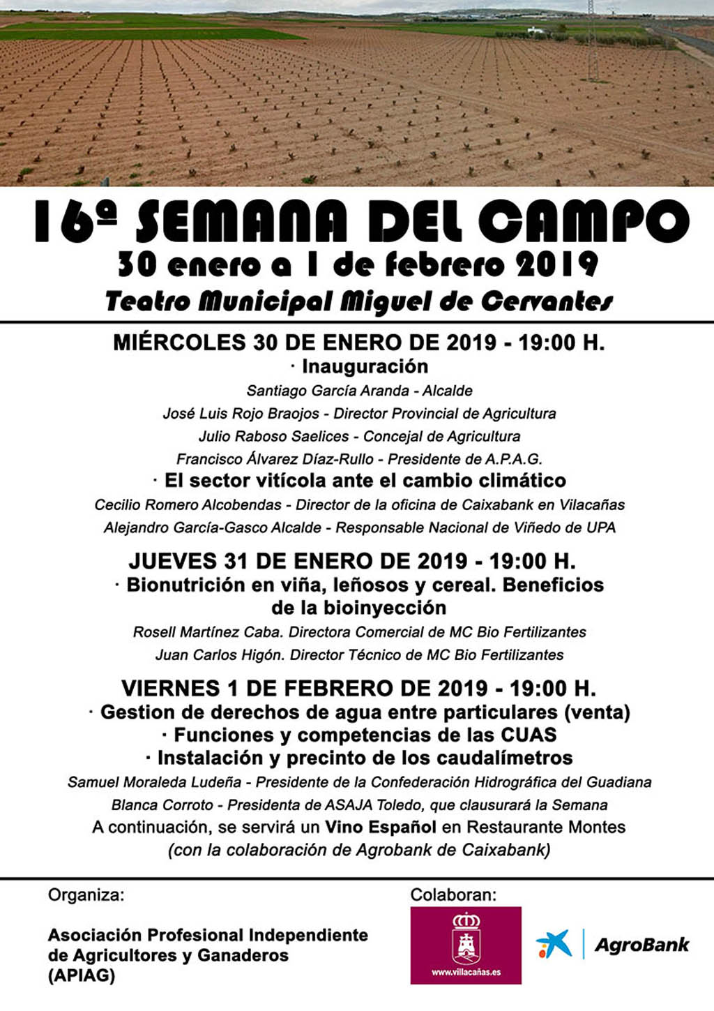 Esta Semana del Campo está organizada por la Asociación Profesional Independiente de Agricultores y Ganaderos (APIAG), con la colaboración de AgroBank y del Ayuntamiento de Villacañas.