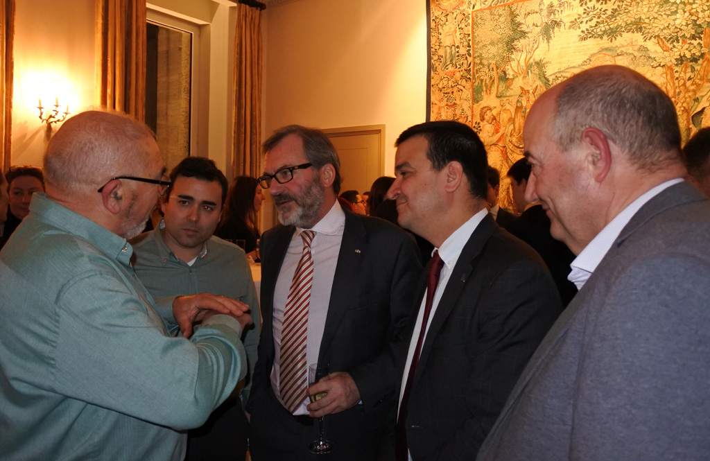 El consejero de Agricultura, Medio Ambiente y Desarrollo Rural, Francisco Martínez Arroyo, junto a empresarios del sector agroalimentario de la región que están participando en la Feria Internacional Hortofrutícola Fruit Logística en Berlín, han asistido a una recepción que ha tenido lugar en la Embajada de España en Alemania, donde fueron recibidos por el embajador, Ricardo Martínez.