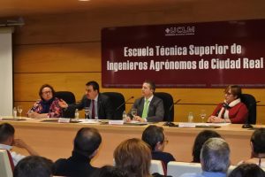 El acto ha contado con la presencia del secretario general de la UCLM, Crescencio Bravo, quien ha agradecido al consejero su presencia en la Escuela para compartir con alumnos y profesores una cuestión que preocupa a todos los castellano-manchegos, y al propio centro académico que trabaja para la implantación el curso académico próximo de los estudios de Grado en Enología.