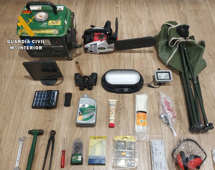 Tras esta detención, la Benemérita consiguió recuperar todos los efectos sustraídos, entre los que destacan, un grupo electrógeno, una motosierra, unos prismáticos, elementos de iluminación y herramienta, que fueron devueltos al denunciante.