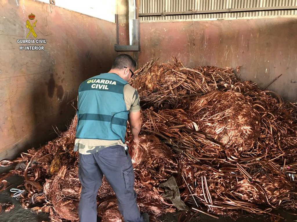 La Guardia Civil ha desarticulado una organización criminal muy activa especializada en robos de cobre a nivel nacional, la cual se le relaciona con el robo de más de 100 toneladas de cable de este metal, procedente principalmente de instalaciones agrícolas de bombeo, plantas solares fotovoltaicas y vías ferroviarias.