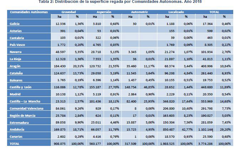 La organización señala que más del 51% de estas hectáreas ya se hace por riego localizado que es el sistema más eficiente y de menor consumo de agua, gracias a las inversiones realizadas a su costa por los propios agricultores.