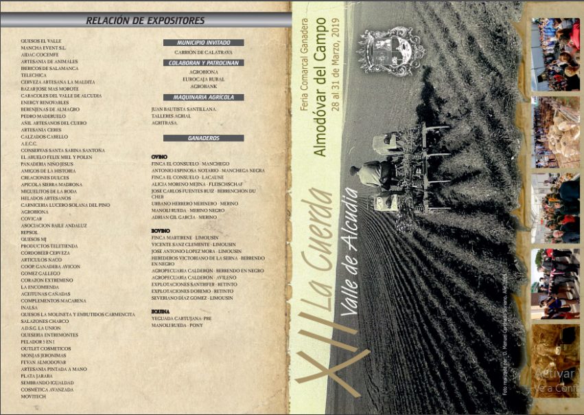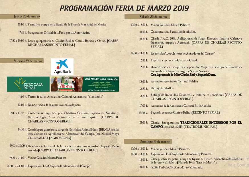 La XII edición de la Feria de Marzo “La Cuerda”, de Almodóvar del Campo (Ciudad Real), tendrá como actividad destacada en su inauguración, este jueves, la Lonja Agropecuaria de Ciudad Real, con sus mesas de cereal, bovino y ovino. La Feria se inaugura a las 17:15 horas, con la música de la Banda Municipal de Música. Posteriormente, alrededor de las 17:30 horas, la Lonja comenzará su actividad, durante hora y media.