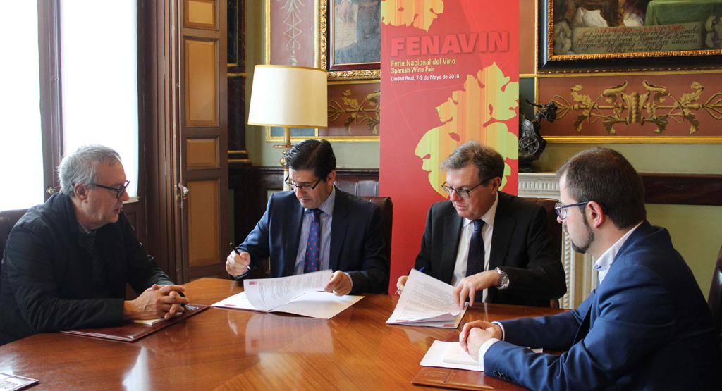 FENAVIN se convertirá, un año más, en el punto de encuentro idóneo entre investigadores de la Universidad de Castilla-La Mancha (UCLM) y bodegueros gracias al nuevo convenio firmado esta mañana entre el presidente de la Diputación provincial de Ciudad Real y de FENAVIN, José Manuel Caballero, y el rector de la UCLM, Miguel Ángel Collado, en virtud del cual la universidad regional contará con un stand en la feria en el que se celebrarán los Encuentros Universidad-Empresa, reuniones bilaterales en las que se divulgará la oferta científico-tecnológica y de formación de la UCLM que está vinculada al mundo del vino.