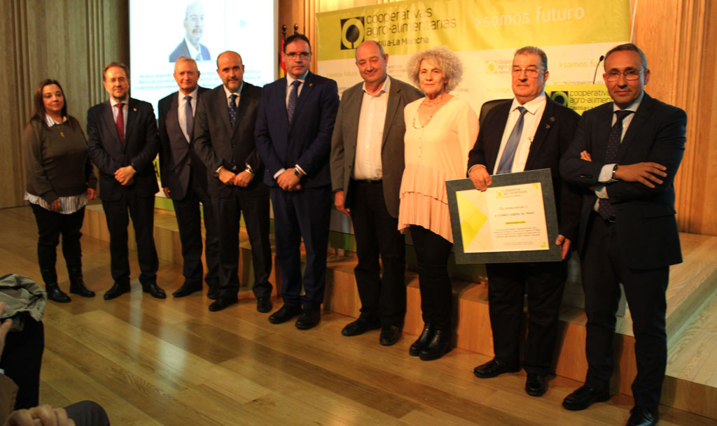 Seguidamente ha llegado el momento de otorgar las Insignias de Oro, que este año se han entregado a Cesáreo Cabrera, por sus más de 25 años de socio, rector y presidente de la cooperativa “El Progreso”, de Villarrubia de los Ojos (Ciudad Real), y por ser uno de los promotores de la cooperativa de Segundo Grado Vidasol, además de ser miembro del Consejo Rector de Cooperativas durante cuatro años; y a título póstumo al técnico sectorial de Cooperativas Juan Martínez Bravo, fallecido recientemente y que ha desarrollado una ingente labor por la defensa del cooperativismo, la agricultura y la ganadería durante más de 28 años, tiempo en el que ha sido técnico sectorial hortofrutícola de Cooperativas e impulsor de la IGP Ajo Morado de Las Pedroñeras.