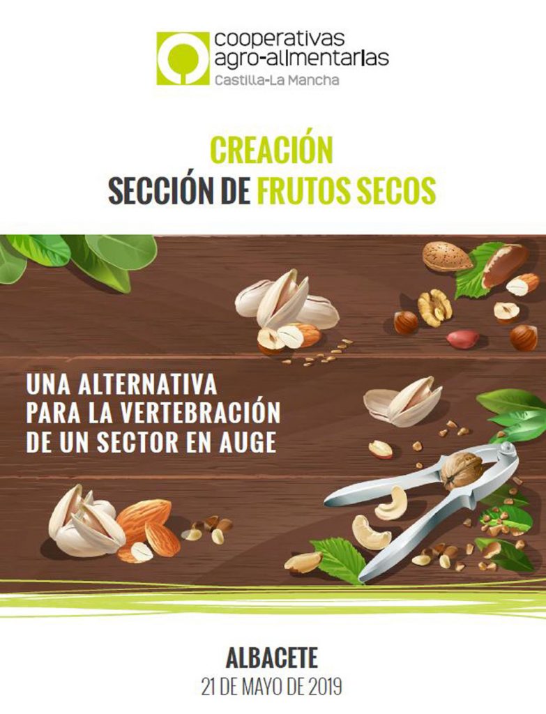Cooperativas Agro-alimentarias de Castilla-La Mancha ha organizado, para el próximo 21 de mayo, en Albacete, una jornada sobre creación de sección de frutos secos, que tendrá lugar en en el Centro Cultural Liberbank