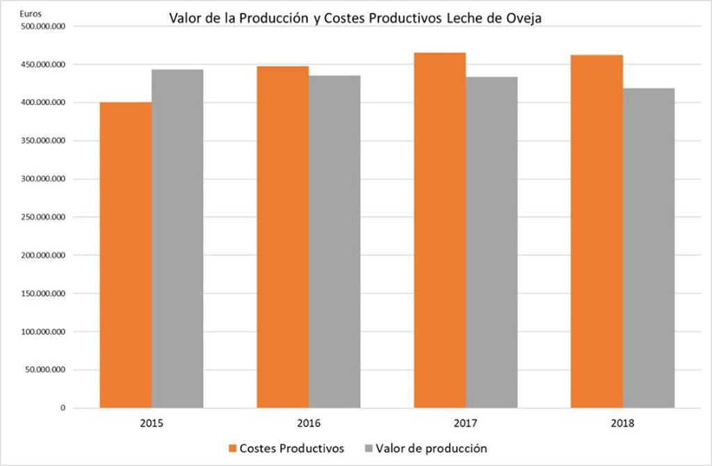 Las informaciones oficiales del FEGA sobre producciones y precios medios, permiten poner el valor de la leche entregada en España con los costes de producción de la ganadería, concluyéndose que, entre 2015 y 2018, los ganaderos españoles de vacuno, ovino y caprino, han vendido la leche por 1.932 millones de euros menos de lo que cuesta producirla: más trescientos millones se refieren al sector de ovino y caprino y, la mayor parte de ellos, unos 1.600 millones, al sector vacuno de leche en esos cuatro años.