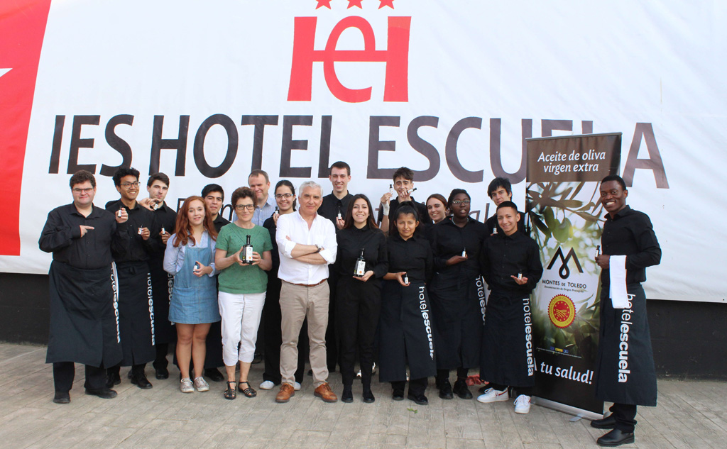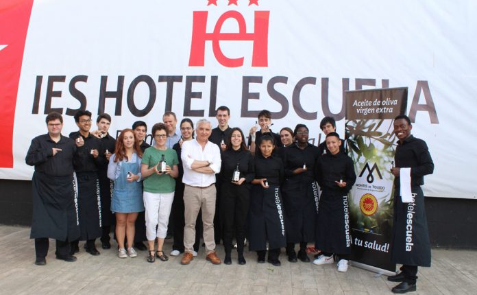 El director de la Denominación de Origen Protegida (DOP) Montes de Toledo, Enrique García-Tenorio, ha mostrado a alumnos y profesores de ciclos formativos de grado medio de Técnico de Servicios en Restauración del IES Hotel Escuela de Madrid las claves para sacar el máximo rendimiento en cocina de este aceite de oliva virgen extra producido a base de aceituna de variedad cornicabra al 100%.