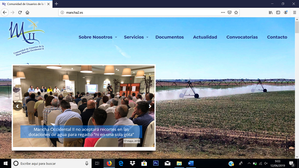 La Comunidad de Usuarios de Aguas Subterráneas (CUAS) de Mancha Occidental II ha completado su red de comunicación con sus miles de usuarios mediante la puesta en marcha de una página web: www.mancha2.es y perfiles en las principales redes sociales: Facebook (@mancha2.es) y Twitter (@Masadeagua2).