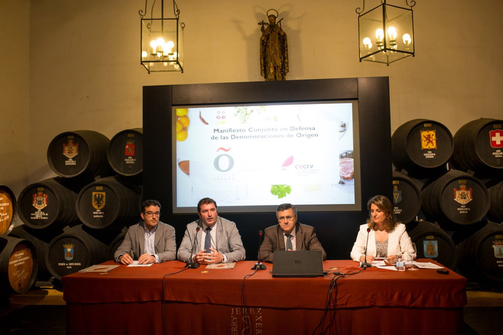 La Conferencia Española de Consejos Reguladores Vitivinícolas (CECRV) y la Asociación Española de Denominaciones de Origen – Origen España, las dos organizaciones representativas de las denominaciones de origen de vino y de denominaciones de origen protegidas e indicaciones geográficas protegidas de productos agroalimentarios, respectivamente, han firmado un manifiesto conjunto con dos objetivos fundamentales: dar a conocer la aportación de las DDOO de vino y de las DOP e IGP agroalimentarias a consumidores, operadores, productos y territorios, y promover conjuntamente el papel de las figuras de calidad en sus respectivos sectores, a través de líneas de trabajo y reivindicaciones conjuntas que permitan el impulso de las figuras de calidad diferenciada.