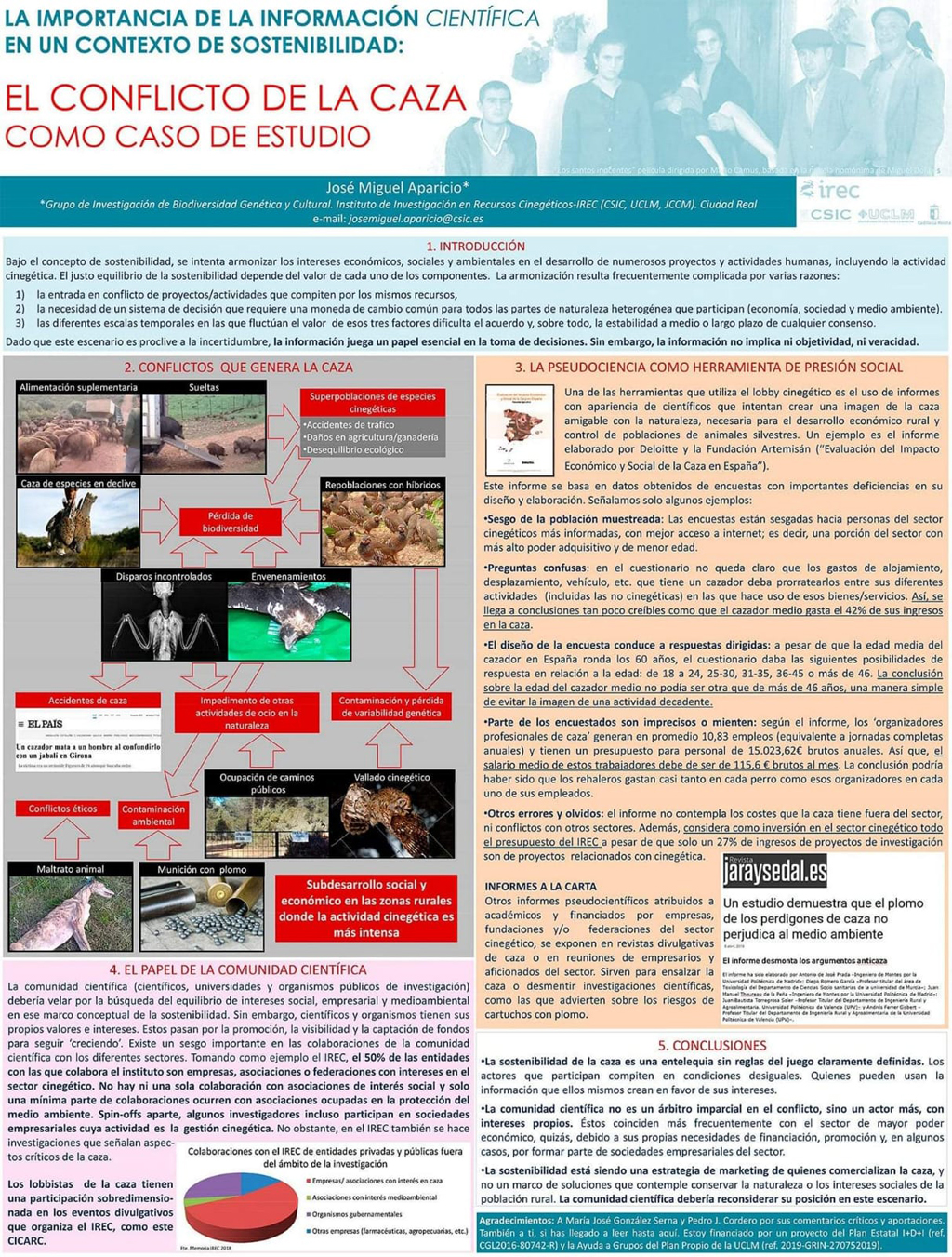 Desde la Federación indican que el último ataque a la caza protagonizado por el instituto que dirige Mateo tuvo lugar la semana pasada en el I Congreso Ibérico de Ciencia Aplicada a la Recursos Cinegéticos (CICARC) donde sus investigadores llegaron a presentar charlas como “El conflicto de la caza como caso de estudio”.