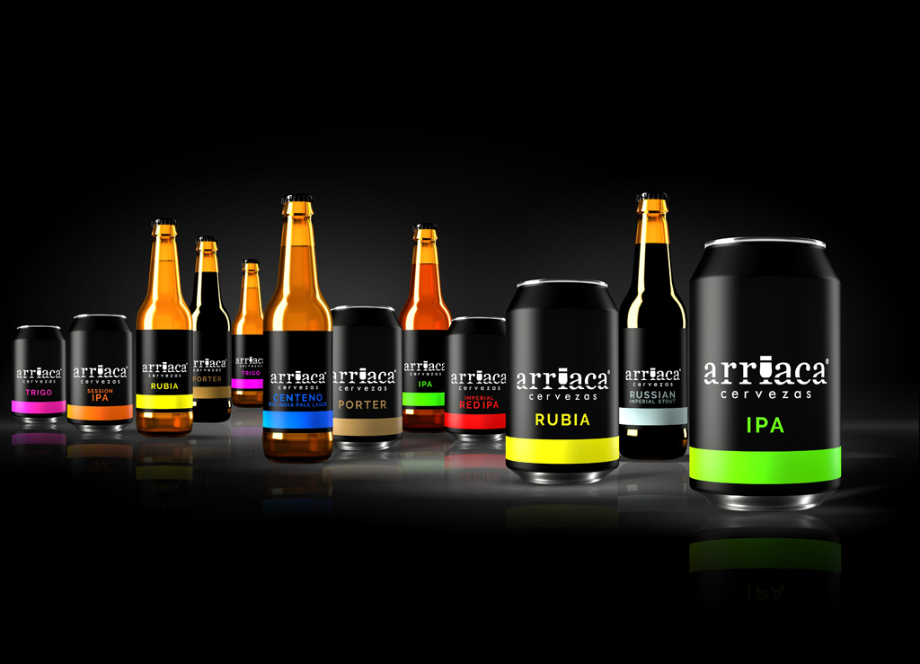 Arriaca mantiene la misma homogeneidad de marca y unidad de diseño en todas sus cervezas, “cuya denominación responde a su estilo y que se distinguen esencialmente por los distintos juegos de colores sobre un elegante fondo negro”.