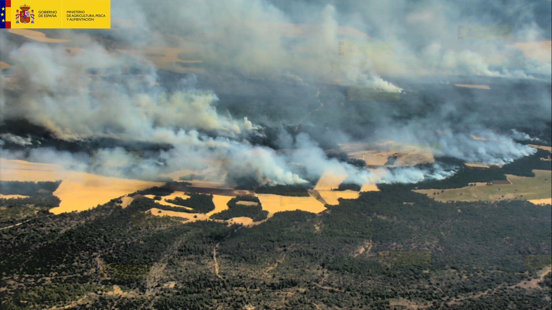 El Ministerio de Agricultura, Pesca y Alimentación ha enviado este miércoles 12 medios aéreos para luchar contra el incendio forestal declarado el martes en el término municipal de Barchín del Hoyo (Cuenca), en apoyo a la Comunidad Autónoma de Castilla-La Mancha.