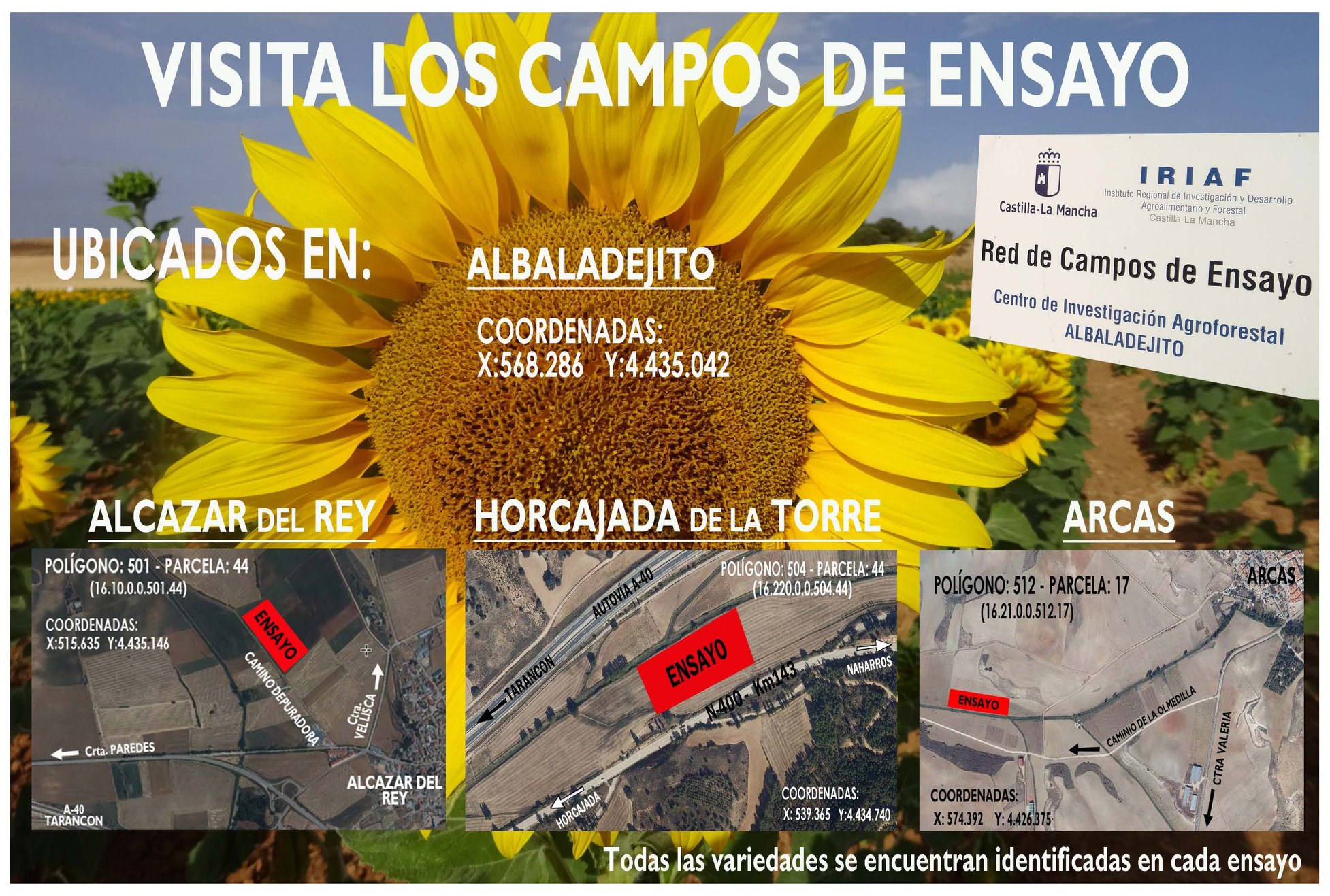 El Centro de Investigación Agroforestal de Albaledejito, en Cuenca, dependiente de la Consejería de Agricultura, Agua y Desarrollo Rural de Castilla-La Mancha, ha dado a conocer la ubicación de las parcelas donde está llevando a cabo ensayos con distintas variedades de girasol, con el fin de que aquellos agricultores interesados en ver el desarrollo de estas variedades puedan hacerlo si lo desean.