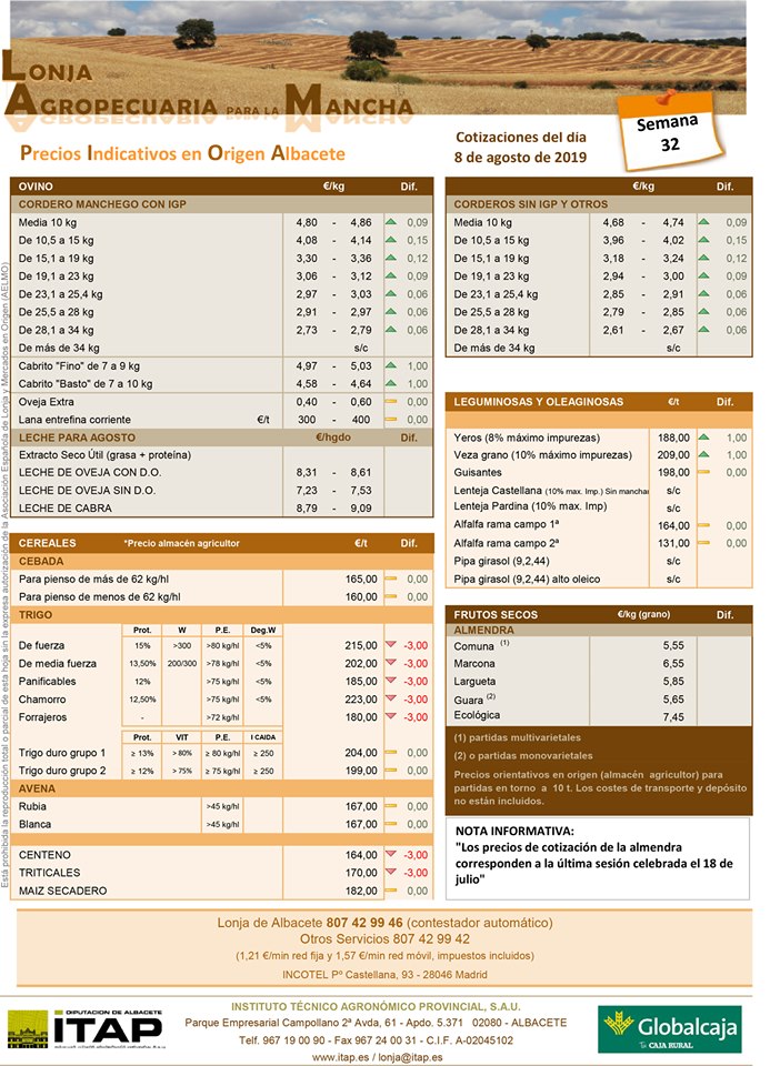 Lonja Agropecuaria La Mancha (Albacete). 8-agosto-2019